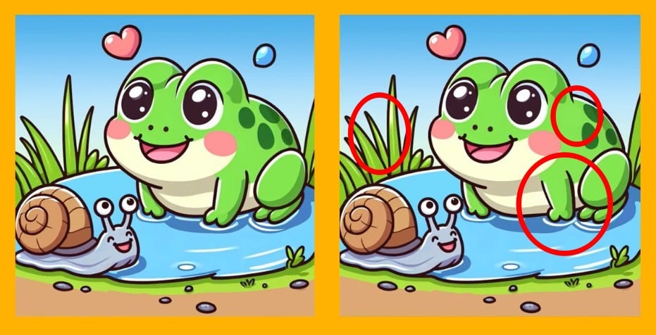 IQ test: v 17 sekundah poiščite 3 razlike med sliko žabe in polža