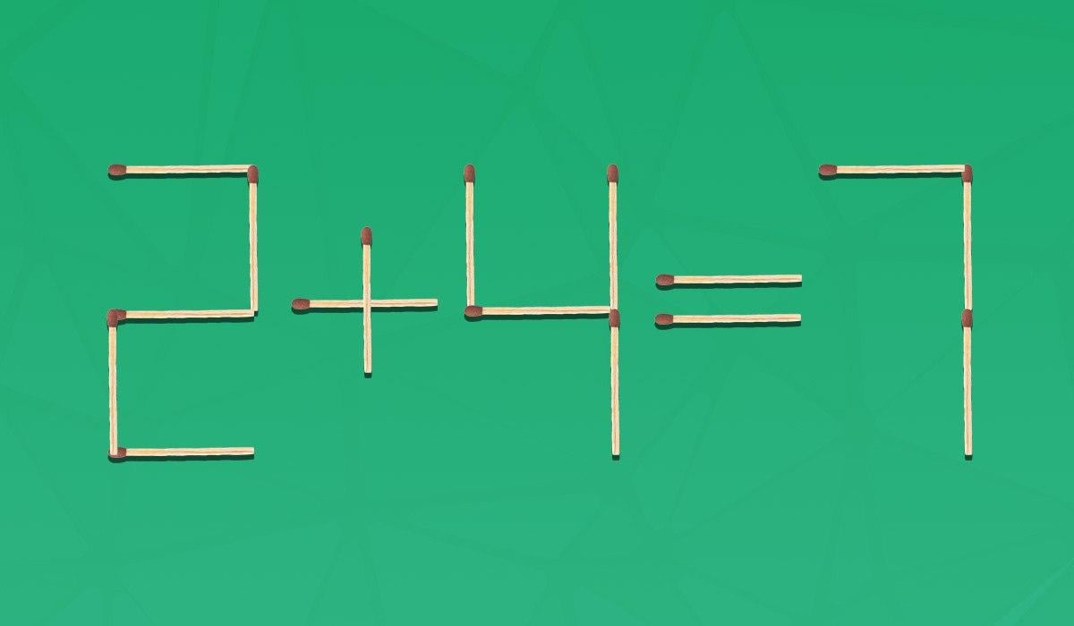 Na prvi pogled je ta uganka z vžigalicami zelo preprosta, vendar je ne podcenjujte. Da bi našli pravo rešitev, boste potrebovali pozornost, logično razmišljanje in sposobnost opazovanja podrobnosti. Napačno matematično enakost 2 + 4 = 7, sestavljeno iz 16 vžigalic, morate popraviti tako, da premaknete eno od njih.