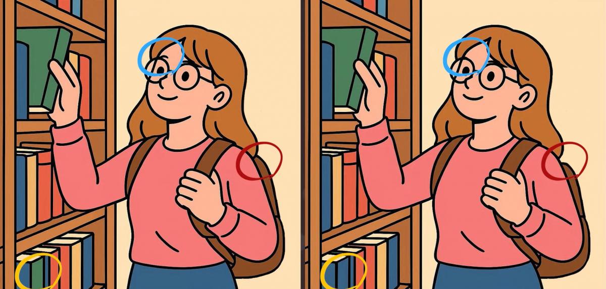 IQ test: v 19 sekundah poišči 3 razlike na sliki dekleta v knjižnici