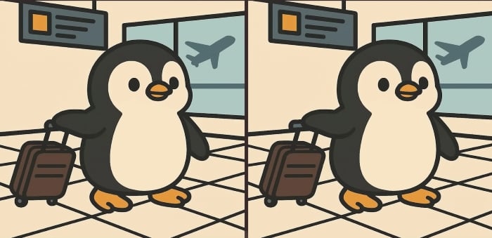 IQ test: v 61 sekundah poišči 3 razlike na sliki pingvina na letališču