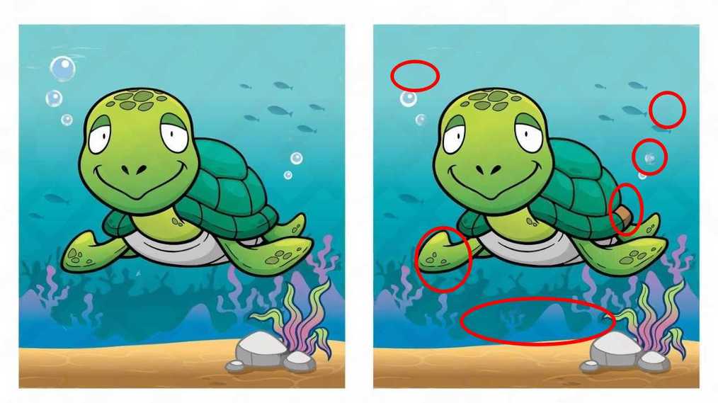 Kakšna je razlika med dvema želvama: poišči 6 razlik v 15 sekundah