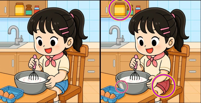 Ste pripravljeni na naslednji izziv? Natančno si oglejte dve sliki deklice, ki gnete testo za torto. Na prvi pogled sta videti enaki, vendar obstajajo tri majhne razlike. Ali mislite, da jih lahko vse najdete v 51 sekundah? Poskusite in preverite svojo ostrino vida!
