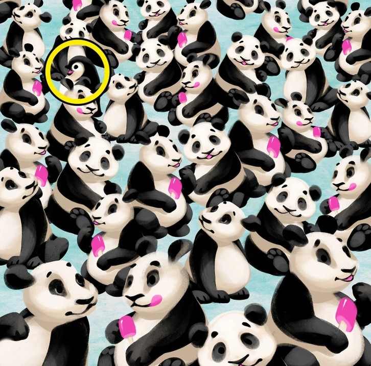 Ko vam je iz dneva v dan dolgčas in vam delovna rutina odvzame vso vnemo, poskusite reševati uganke. Zabavne optične iluzije vas bodo nasmejale in urile vašo pozornost. Tokrat moramo med pandami najti pingvina.