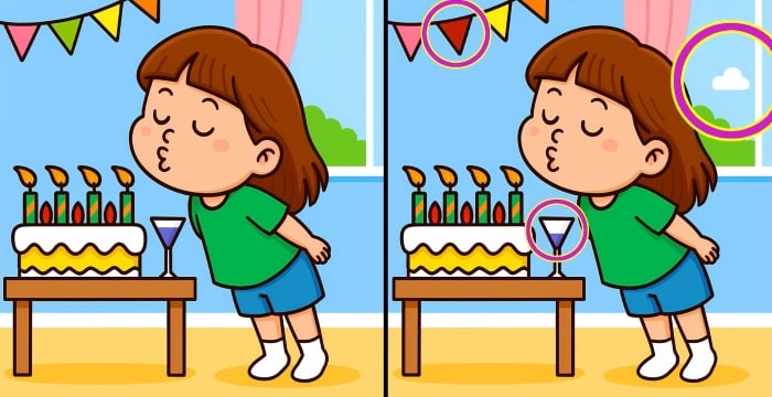 Ste pripravljeni na naslednji izziv? Natančno si oglejte dve sliki deklice, ki piha svečke na torti. Morda sta na prvi pogled videti enaki, vendar so med njima tri majhne razlike. Ali mislite, da jih lahko vse najdete v 31 sekundah? Poskusite in preizkusite svojo ostrino vida!