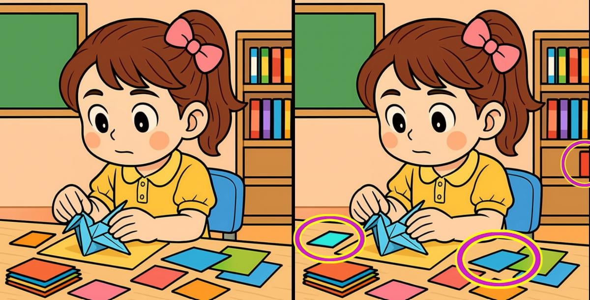 Ste pripravljeni na naslednji izziv? Natančno si oglejte dve sliki deklice, ki izdeluje ptice iz papirja. Morda sta na prvi pogled videti enaki, vendar obstajajo tri majhne razlike. Ali mislite, da jih lahko vse najdete v 19 sekundah? Poskusite in preizkusite svojo ostrino vida!